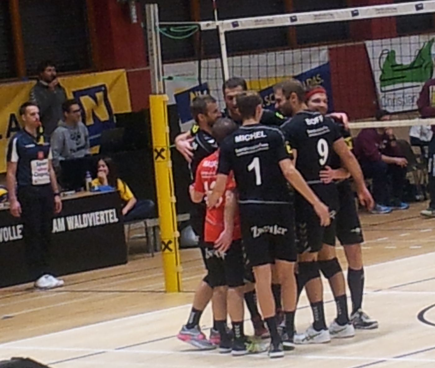 Auch die Randsportart Volleyball ist im Waldviertel eine Macht. Zwar ging das Spiel gegen Graz nach 135 Minuten Spielzeit mit 2:3 verloren, doch die Halle war gerammelt voll und der Kampf um jeden Ball war Trumpf. UBBC Manager Chwatal mit Gattin, sowie Anni und Maria Wandaller besuchten das Spiel und feuerten die Gastgeber ordentlich an.