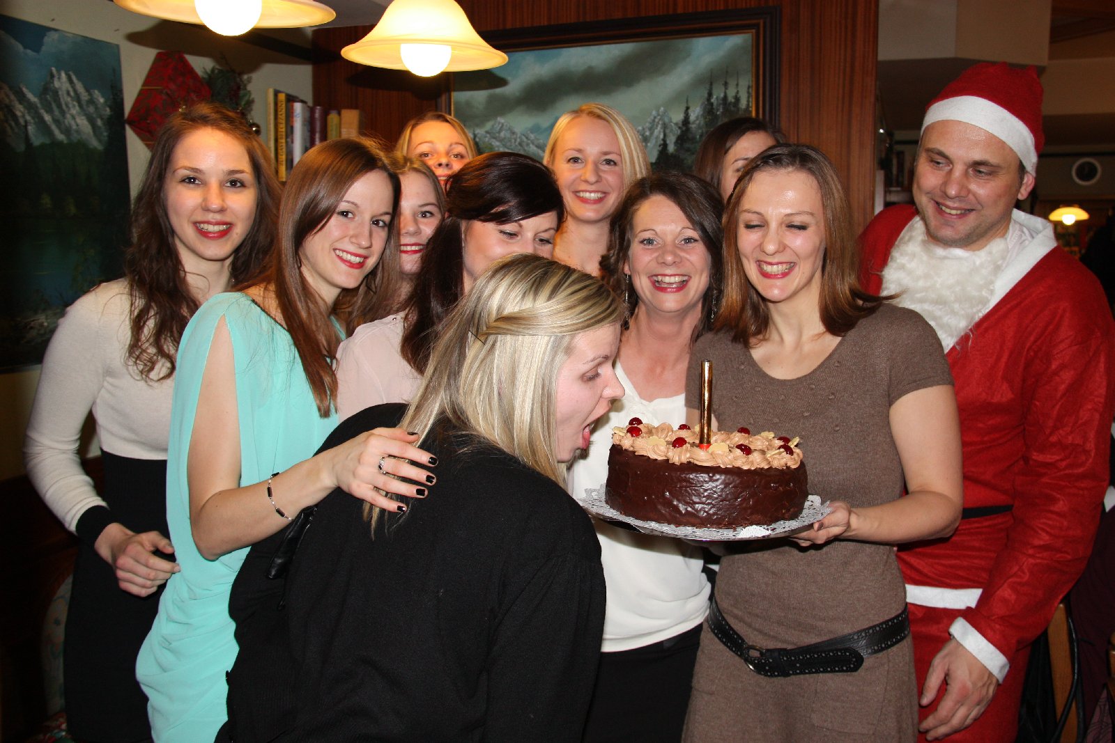 Coach Spazierer und das UBBC Damenteam überraschten Nici schmid zum Geburtstag mit einer Original Traxler Sachertorte.